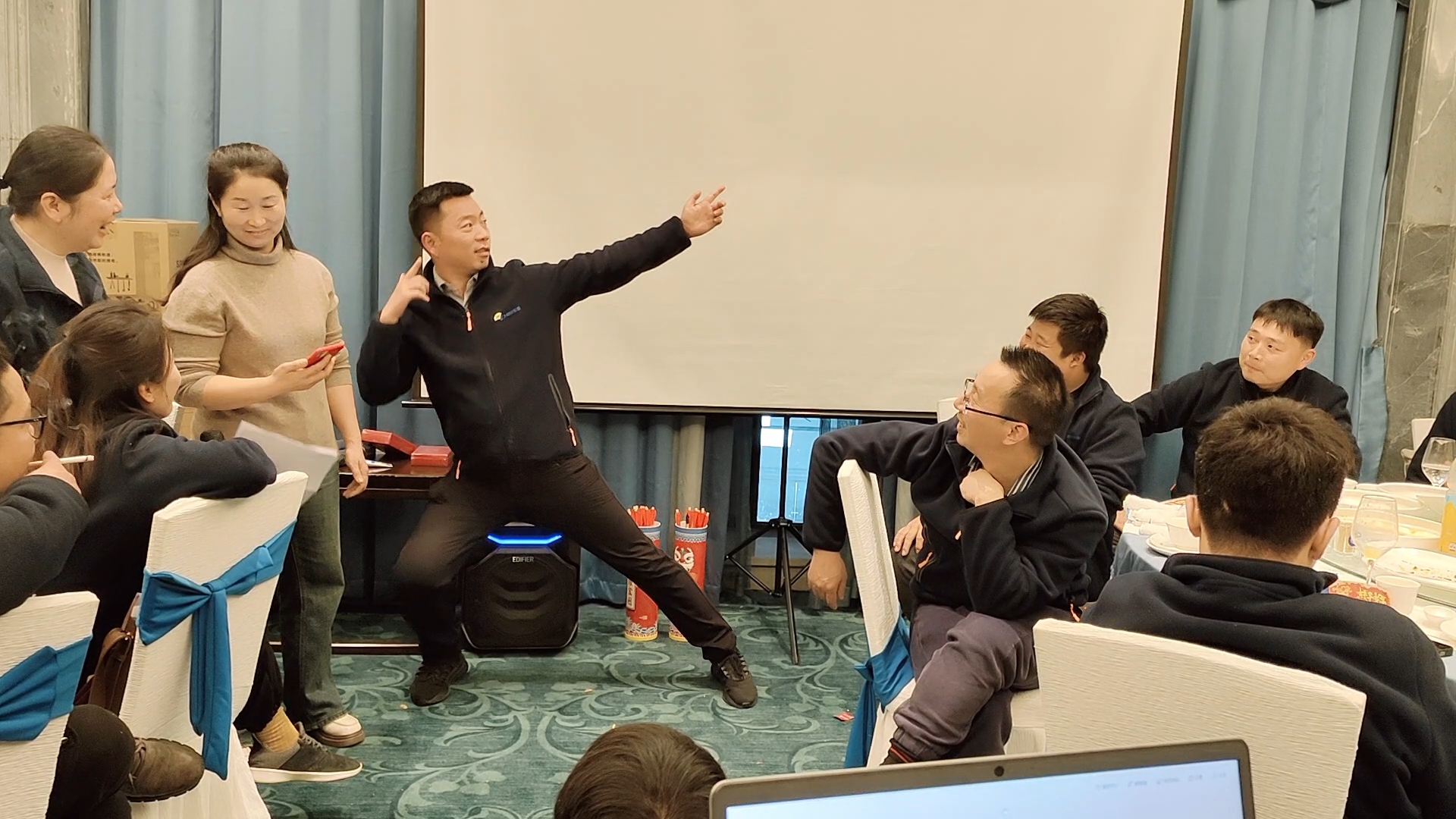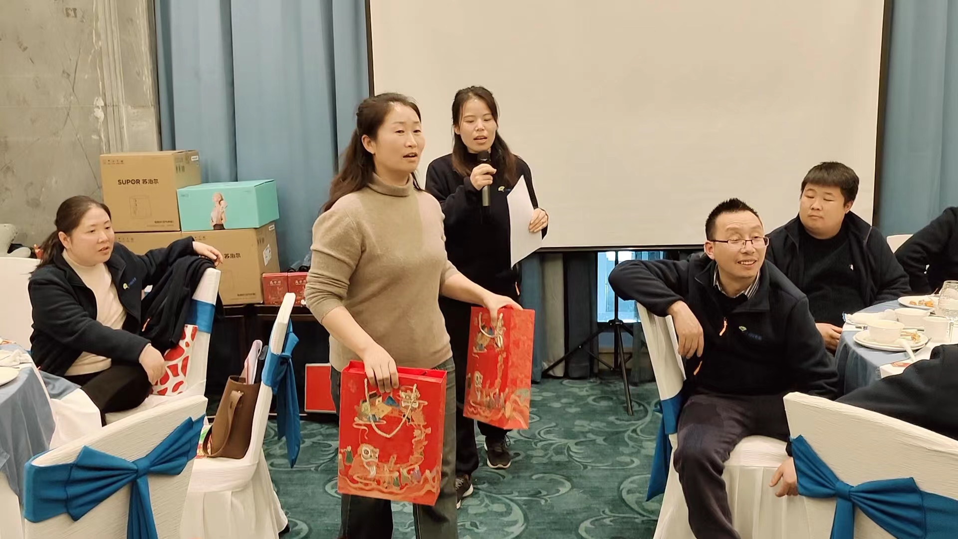 除了表彰和感恩,年会上还进行了游戏和抽奖环节,各种富有趣味性的活动让气氛更加热烈,大家纷纷参与,展现了团队合作和竞争的精神。从你画我猜到逢7必过,从真假难辨到投壶游戏,都让员工们尽情释放自己的激情和乐趣。